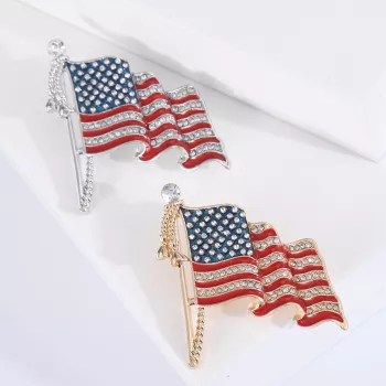 • 3D waving flag design with vivid red, white, and blue enamel